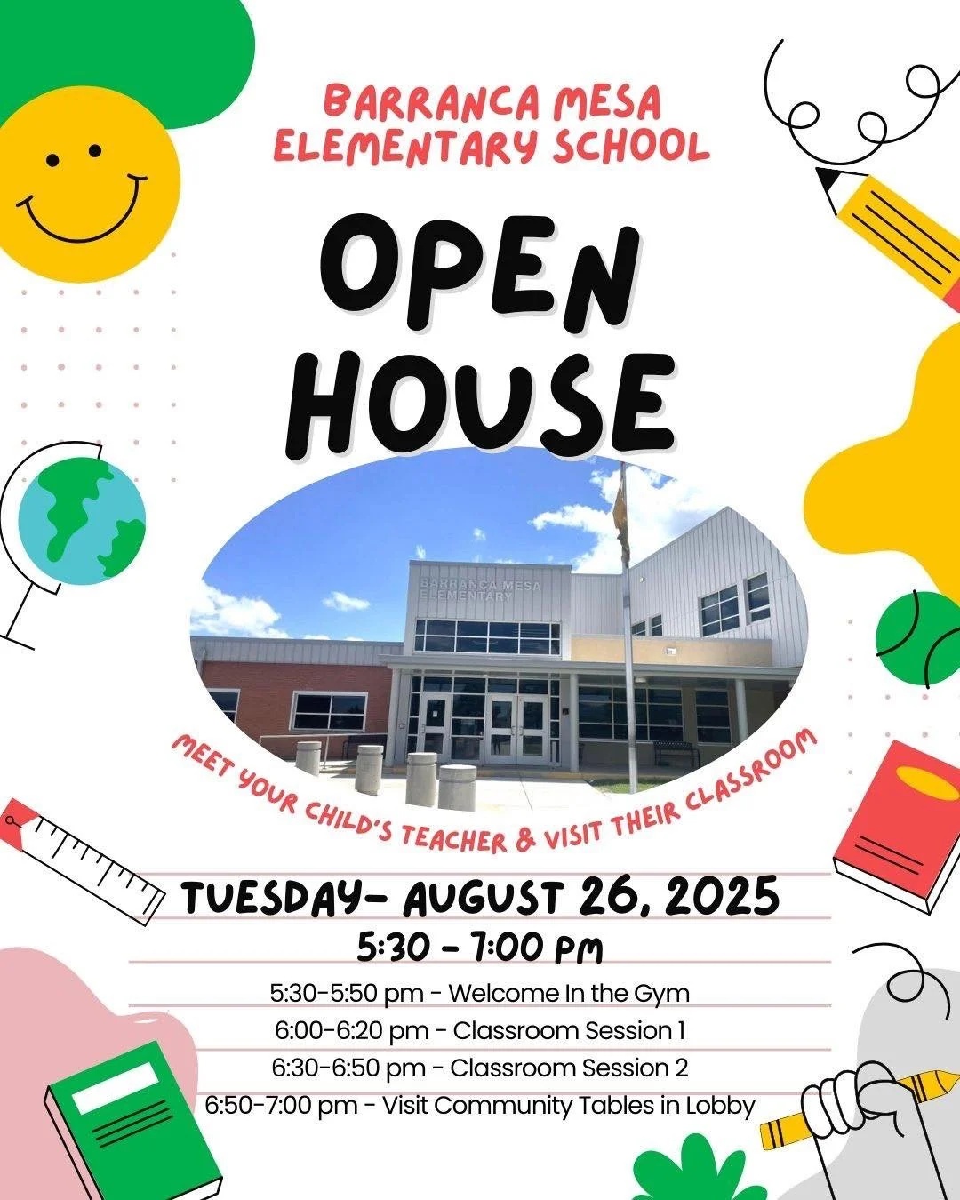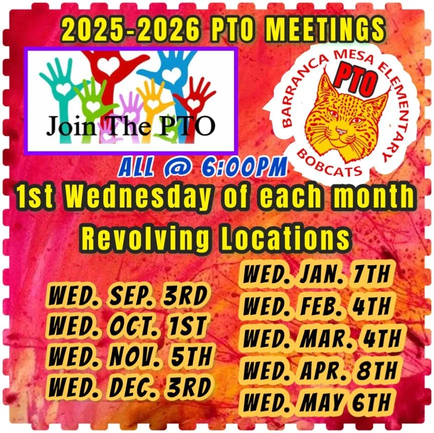 Membership in the PTO automatically includes parents and legal guardians of the students currently enrolled at Barranca Mesa Elementary School.